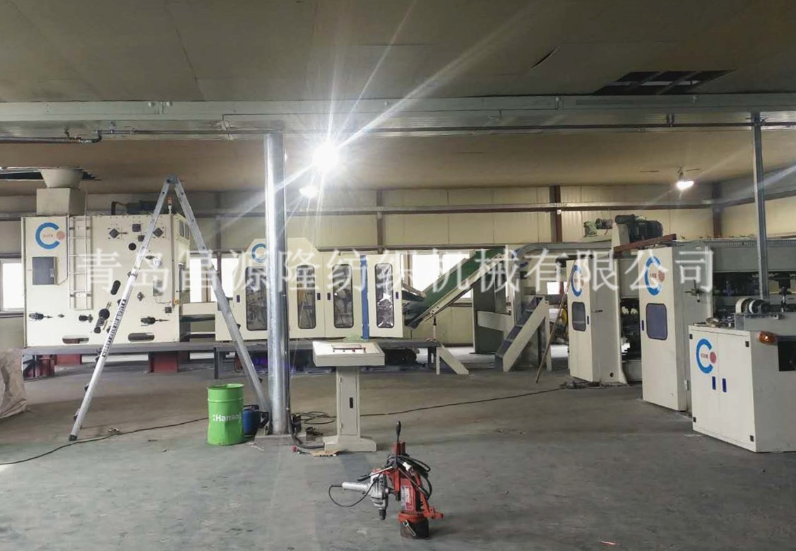 4. CYLSL-2000梳理機:該機(jī)為單錫林、雙道夫、四雜亂、羅拉剝取。該機所有輥筒都經調質和定性處理後,再精密(mì)加工。牆板由鑄鐵加工而成,針布采(cǎi)用國產優(yōu)質針布,並(bìng)配有吸風裝置,可減少清機次數,還帶有走台。具有分梳能力強,產量高等優點。