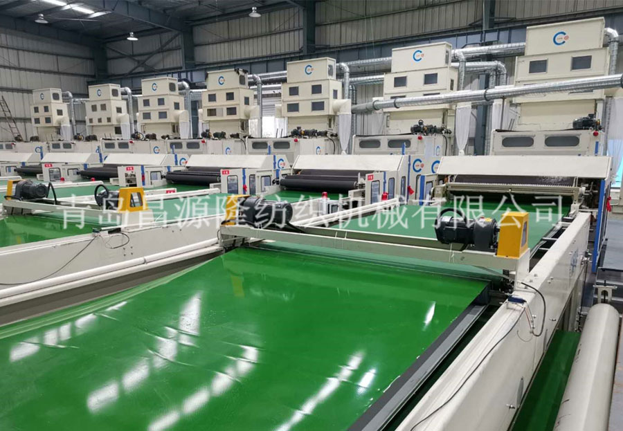 4. CYLSL-2000梳理機:該機為單錫(xī)林、雙道夫、四雜亂、羅(luó)拉剝取。該機所有輥(gǔn)筒都經調質和定(dìng)性處理後,再精密加工。牆板由鑄鐵加工而成,針布采用國產(chǎn)優質針布,並(bìng)配(pèi)有吸風裝置,可減少(shǎo)清機次數,還帶有(yǒu)走台。具有分(fèn)梳能力強,產量(liàng)高等優點。