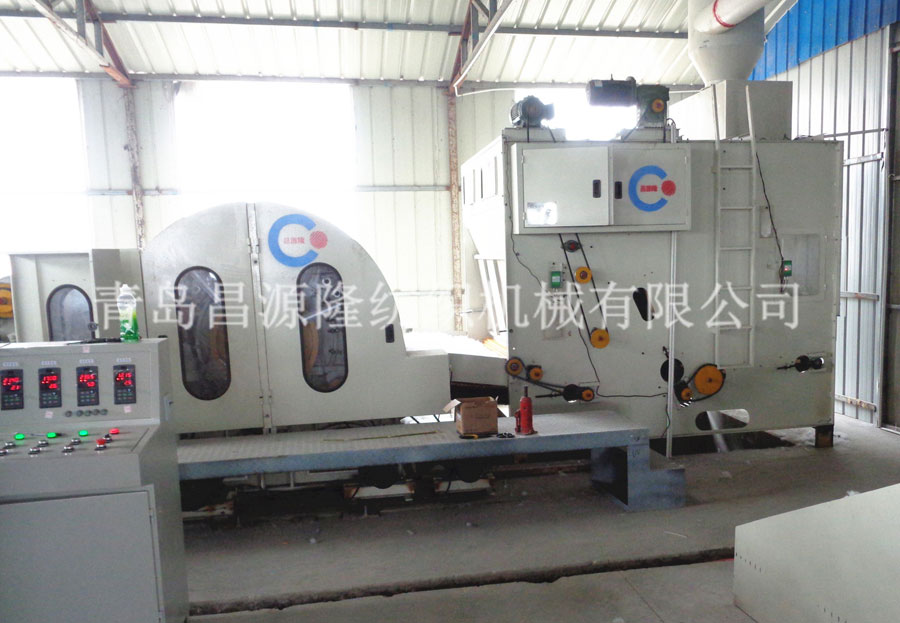4. CYLSL-2000梳理機:該機為單錫林(lín)、雙道夫、四雜亂、羅拉剝取。該機所有輥筒都經調質和定性處理後(hòu),再(zài)精密加工(gōng)。牆板由鑄鐵加工而成,針布采用國產優質針布,並配有吸風(fēng)裝(zhuāng)置,可減少清機次數(shù),還帶有走(zǒu)台。具有分梳能力強,產量高等優點。