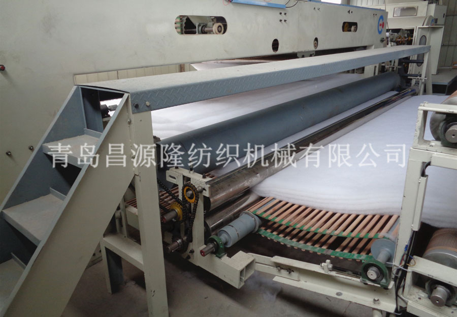 5. CYLPW-2200鋪網機:機(jī)架采用6mm鋼板(bǎn)折彎而成,鋪網簾之間加補(bǔ)償電機,減少纖網牽伸(shēn)。往複換(huàn)向用變頻控製,衝擊力小,能自動緩衝平衡換向,並配有多段速(sù)控製。底簾可調節升降,使棉網能按照所需要的單位克重均勻鋪疊到底簾上(shàng),供下一道工序使用。斜簾﹑平簾和大車平(píng)簾用高檔優質皮簾,底簾和環簾為木簾(lián)子。