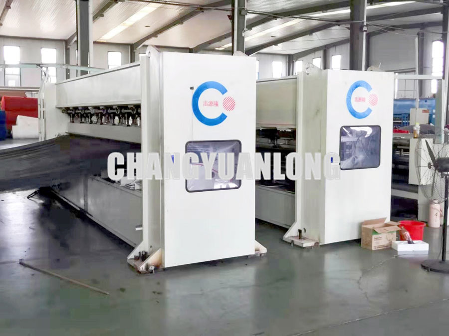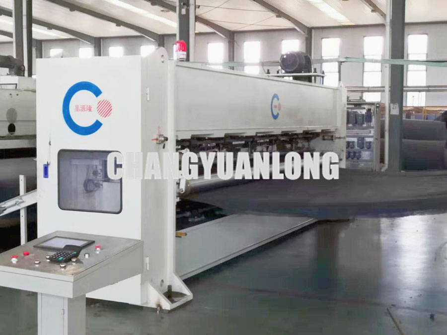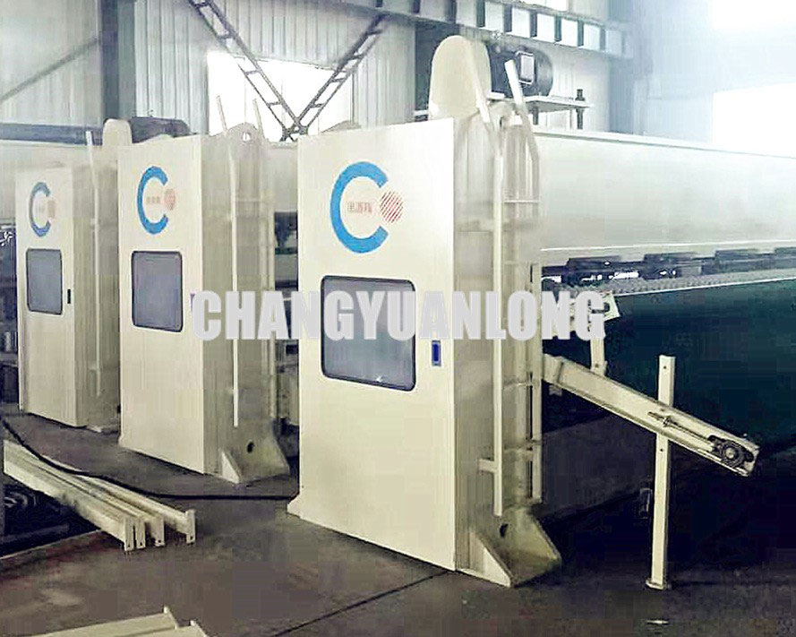 鋪網機將鋪(pù)好的棉網喂入針刺區,針刺機對(duì)蓬鬆棉(mián)網進行初加工;由一對(duì)輥組成的輸(shū)出機(jī)構將(jiāng)初步針刺的棉網輸出,
