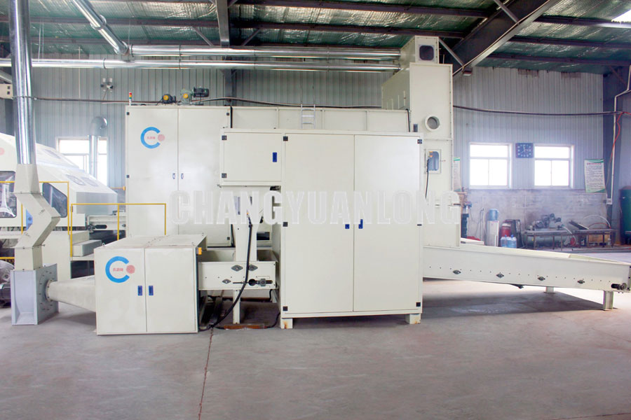 用途特點:開鬆各種等級捆包(bāo)纖維(wéi),定量(liàng)喂入(rù),多台複合使用可按(àn)比例混(hún)合(hé)不同纖(xiān)維,自動控製調節(jiē)範圍大, 使不同纖維配比準確,混合均勻,使用機械稱重結(jié)構。